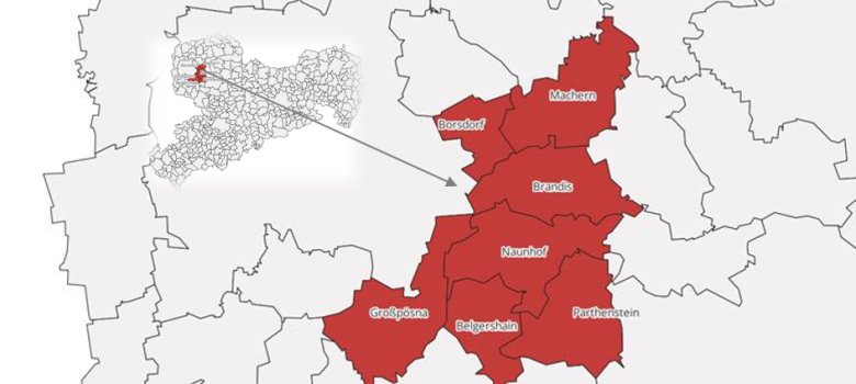 Die sieben Städte und Gemeinden Brandis, Borsdorf, Großpösna und Machern sowie die Gemeinden der Verwaltungsgemeinschaft Naunhof mit den Gemeinden Naunhof, Belgershain und Parthenstein liegen zwischen den Mittelzentren Wurzen und Grimma sowie dem Oberzentrum Leipzig. Diese Kommunen haben zusammen rund 46.000 Einwohner und eine Gebietsgröße von etwa 230 km2.